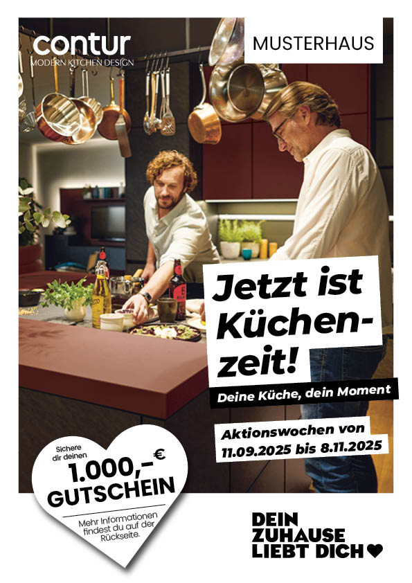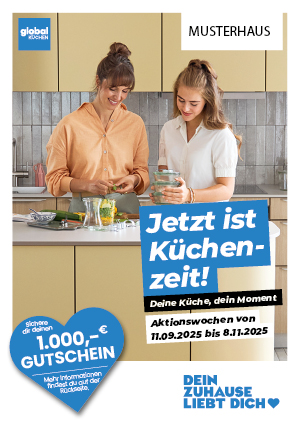 Jetzt ist Küchenzeit: Unter diesem Motto wollen wir 2 Monate lang in der besten Küchenzeit für diese wichtige Warengruppe Vollgas geben. Der Tag der Küche bildet dann den Abschluss. Auch dieses wieder mit der Unterstützung von Schüller, diesmal sogar in 3 Varianten: für Schüller neutral, für GLOBAL Küche und für CONTUR Küche. So kann jeder Händler seine Marke perfekt spielen.