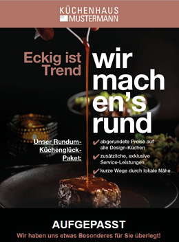 Individualisierung und Druck der Prospekte oder/und der Postkarte, die Ausspielung Ihres Newsletters und/oder Ihres Digitalprospektes, passende Anzeigen, Social Media Ads... was auch immer Sie mit der Küchen-Kampagne umsetzen möchten...wir kümmern uns drum!