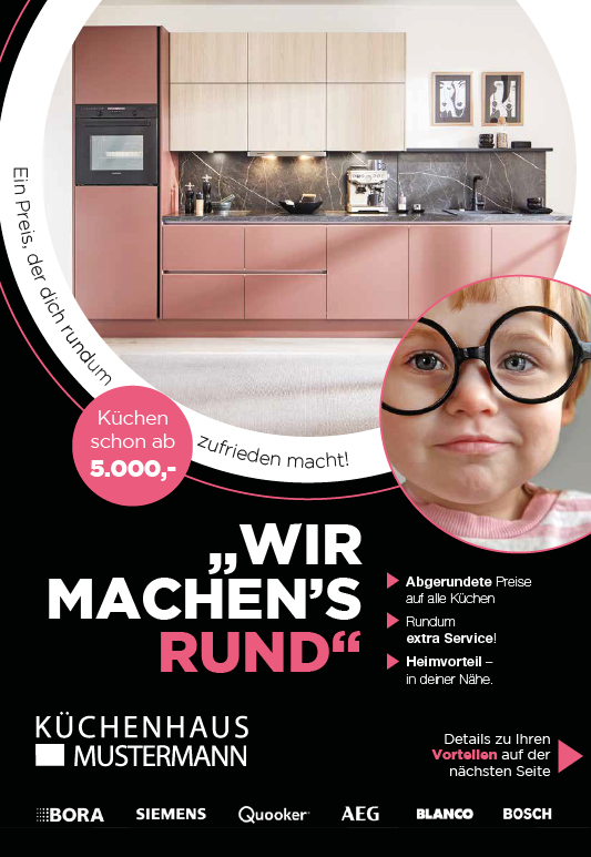 Individualisierung und Druck der Prospekte oder/und der Postkarte, die Ausspielung Ihres Newsletters und/oder Ihres Digitalprospektes, passende Anzeigen, Social Media Ads... was auch immer Sie mit der Küchen-Kampagne umsetzen möchten...wir kümmern uns drum!